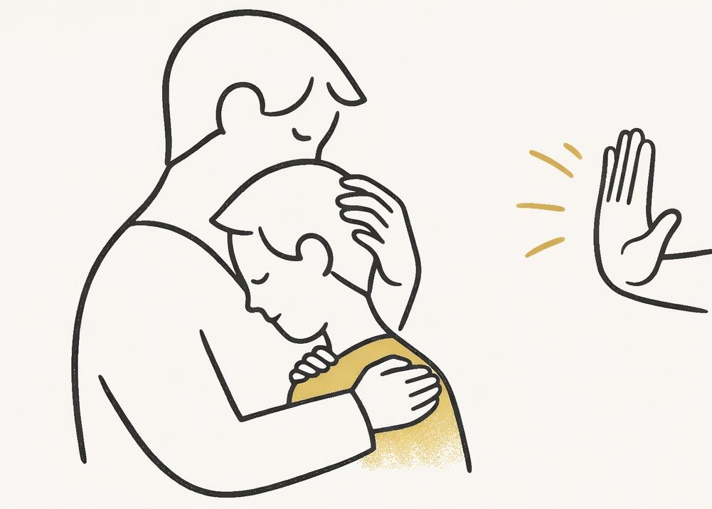 Nähe zeigen reicht manchmal mehr als Worte. - Etwas bewusst weglassen.